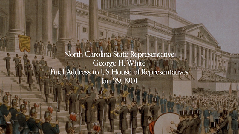 The story of North Carolinian George Henry White, the last African American congressman from eastern North Carolina before the rise of Jim Crow. His remarkable ascent and farewell speech in Congress stand as enduring testaments to perseverance and American democratic ideals.